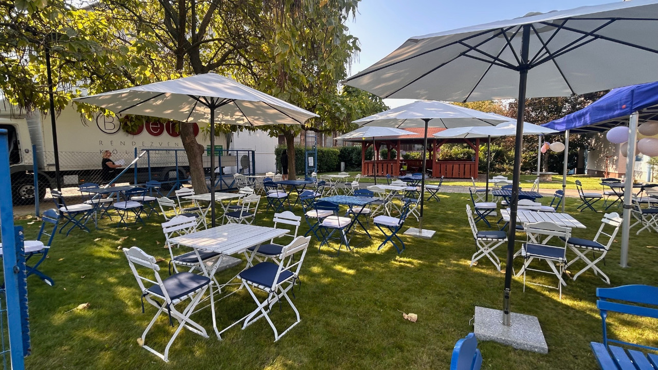 - kerti garnitúra fehér - kék ülőpárnákkal