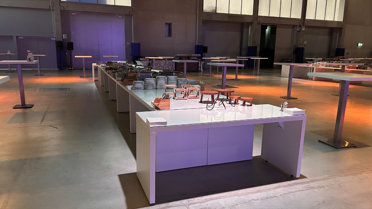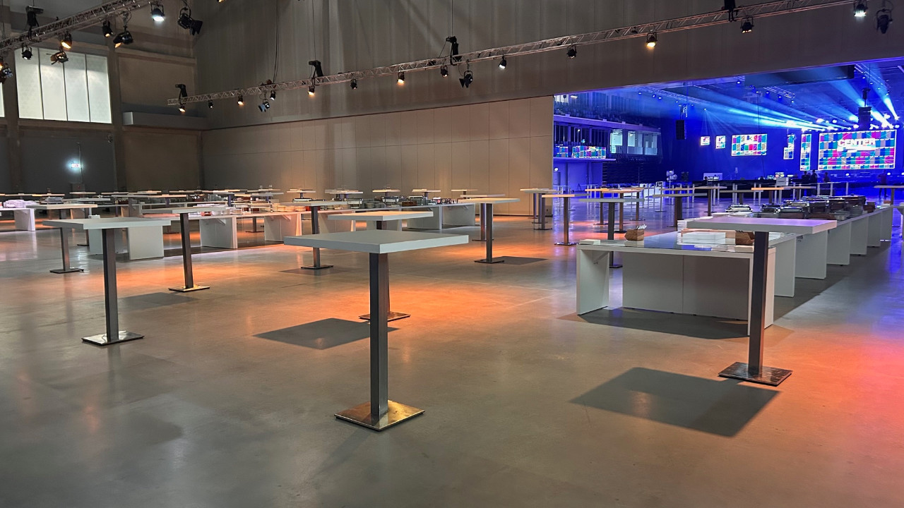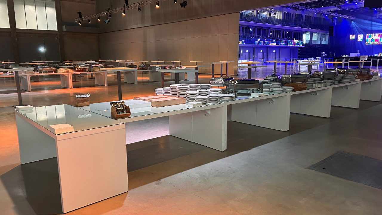 - 50 db híd bankett asztal üveglappal büféasztalként